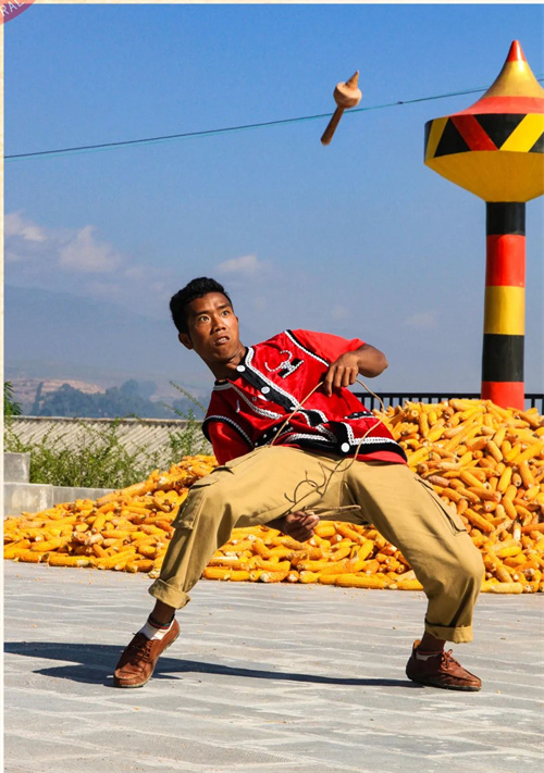 雞樅陀螺形狀像野生菌——雞樅而得名,佤族稱之為“趕迪約”。雞樅陀螺的由來,傳說起源于三國,諸葛亮南征蠻夷之時。最初用作祭祀表演,在每年“潑水節(jié)”前一月的農(nóng)歷屬龍日舉行,當日也叫“祭龍節(jié)”。后來發(fā)展演變?yōu)檗r(nóng)閑或年節(jié)時用來娛樂和表演的技藝,一直流傳至今。