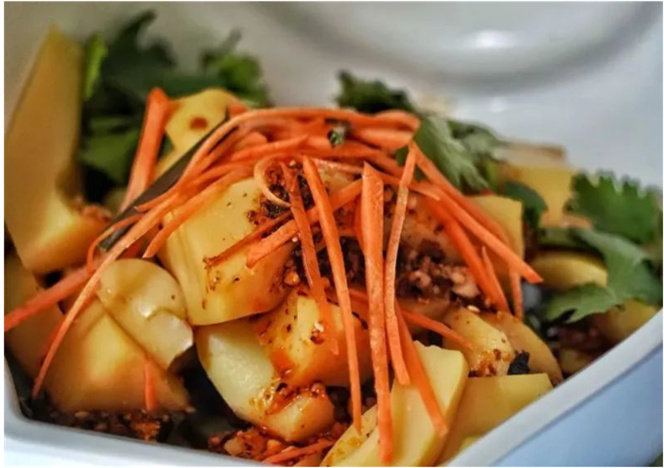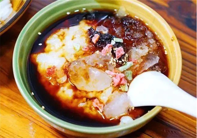 豌豆粉色澤金黃,質(zhì)地細膩滑嫩,具有較強的吸附性,能吸收調(diào)料里各種鮮美的味道,吃上一口,酸辣可口的調(diào)料配上自身濃郁的豆香味,令人食欲大增,吃了一碗還意猶未盡。