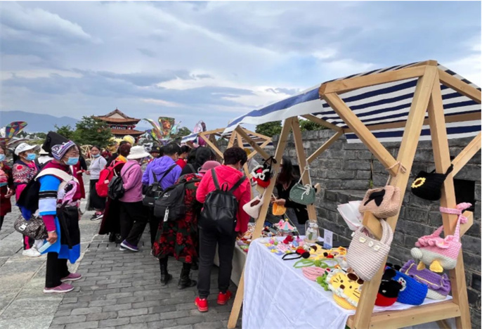 集市上,各色手藝人紛紛帶著自己的得意作品出攤,琳瑯滿目,在古老的城墻之上挑選各色充滿現(xiàn)代氣息的商品,有著一種奇異又令人著迷的時(shí)空交錯(cuò)感。