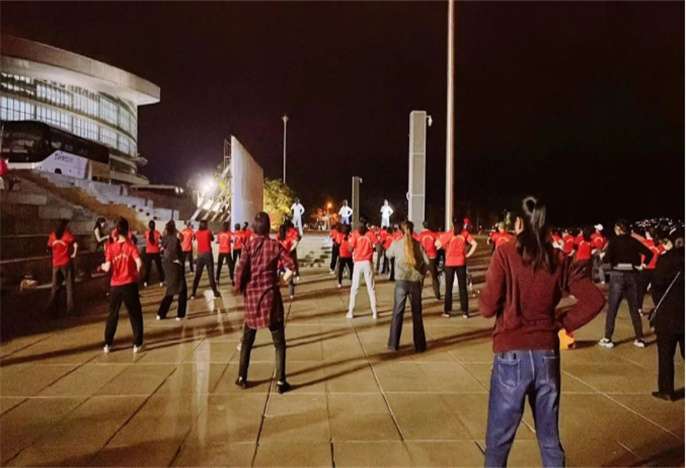 全民健身中心的區(qū)域內(nèi),有一個(gè)巨大的廣場(chǎng)。有人說這里是孩子和狗子的天堂,然而,實(shí)際上這里容納了從老到少、從男到女的飯后娛樂時(shí)光。