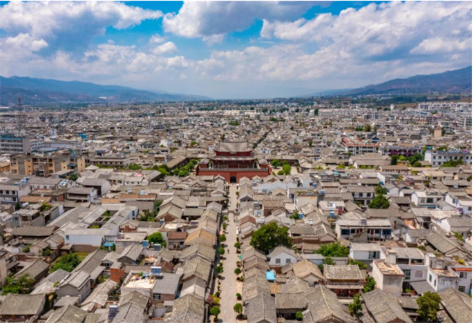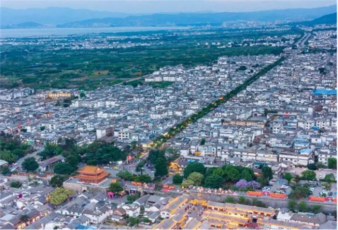 今日的大理古城,北起中和溪,南抵白鶴溪,東始東門村,西臨214 國道。經(jīng)過專家現(xiàn)場實測,今天的天理古城與西門至東門并行的洪武路為1.5千米,南門至北門為1.49千米,城池形態(tài)為方形,與清《大理府志·卷六》所述尺寸相符。