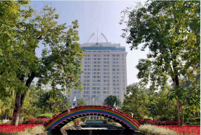 賓館現(xiàn)占地60余畝,花園內(nèi)有1956年周恩來總理和緬甸吳巴瑞總理種下的象征中緬友誼的緬桂花樹,賓館緊鄰商業(yè)繁華區(qū)、芒市廣場、傳統(tǒng)古剎菩提寺、樹包塔、勐煥大金塔、勐煥銀塔等旅游景點。