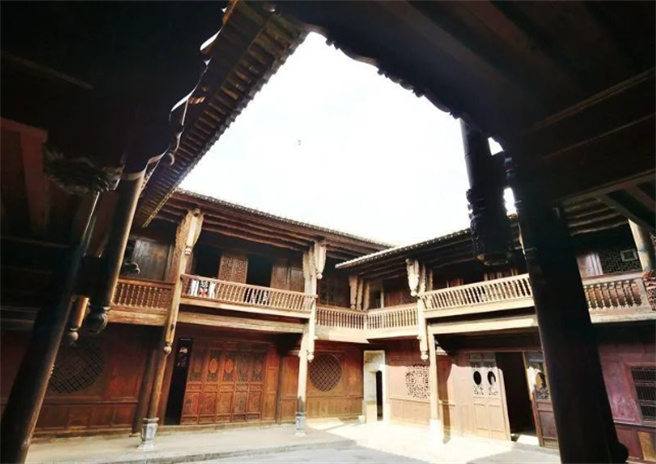 團(tuán)山村民居建筑多為院落式,以天井為核心通過形狀不一的過道通往主體院落,民居均采用青瓦屋面白石灰粉飾外墻檐角有高挑的起巧,家家戶戶雕梁畫棟圖案不一建筑裝飾用木雕、石雕、磚雕及彩繪書畫布局處理精細(xì)、安排合理各式各樣的吉祥圖紋、戲文人物雕刻技藝手法細(xì)膩、工藝奇巧。
