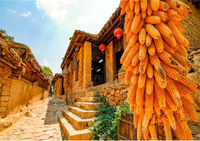 綠樹掩映下的石頭房,寧?kù)o又淳樸。最有回歸田園的韻味,民居分為兩層,一層作堂屋、臥室右側(cè)為廚房,二層為儲(chǔ)藏糧食,農(nóng)用具所用一二層之間以木梯交通。