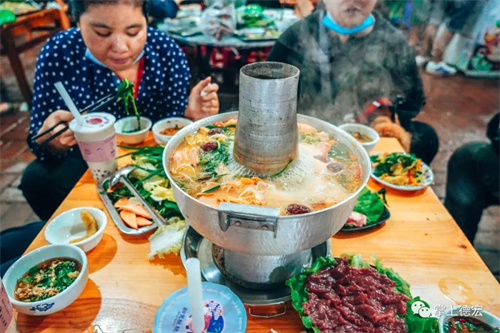 酒香不怕巷子深 客人坐得滿滿當當?shù)摹居屑倚』疱仭?藏在夜市的盡頭處 每天能賣上百桌 素菜40多種,葷菜30多種 小份又新鮮豐富的食材 讓客人不用擔心人少吃不完 還能任性地挑選多種心愛的食材 深受食客的喜愛  老板娘經(jīng)常用視頻 記錄客人來店里的熱鬧氛圍 發(fā)在網(wǎng)上后,引發(fā)不少關注 老板娘談及受歡迎的原因 “火鍋和夜市都有濃濃的煙火味” “可能是因為這兩個因素,小火鍋都有”   圖片  夜市的篷布之下,狹窄的過道桌距 冒著的騰騰熱氣,老式的炭火爐子 一涮一夾之間 充滿了【有家小火鍋】獨有的煙火氣
