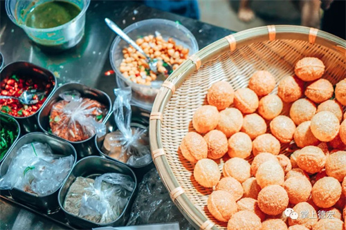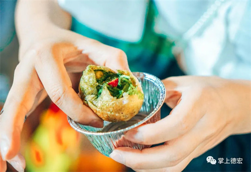 怎么能不試試這個網(wǎng)紅小脆球 這個名叫Pani Puri的印度爆款美食 外觀看起來非常的可愛、吸引人 2塊一個的小脆球 老板一晚上可以賣上百個 深受男女老少的喜愛  原本頗“印度”的原味 經(jīng)過老板的改良 變成了適合德宏人口味的酸辣味 入口的瞬間非常奇妙 爽脆的外殼、軟嫩的土豆內里 空心小球中加上 解膩的洋蔥、辣椒、瑪莎拉等調料 一口咬下去滿口爆汁 一口一個,找到了童年吃食的快樂
