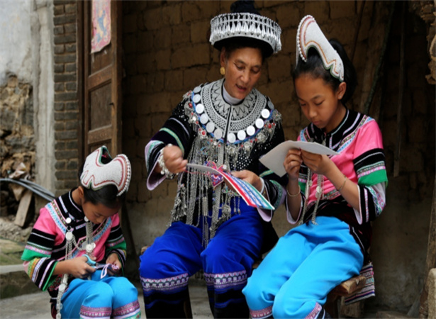 ?四、刺繡:刺繡選取黑、藍、紅、黃、青紫等不同顏色的絲線,以“平繡”繡法為基調(diào)進行創(chuàng)作。刺繡功底因人而異,靠長年累月的修煉和婦女個人的悟性,具有較強的立體感,繡品精美,經(jīng)久耐用。