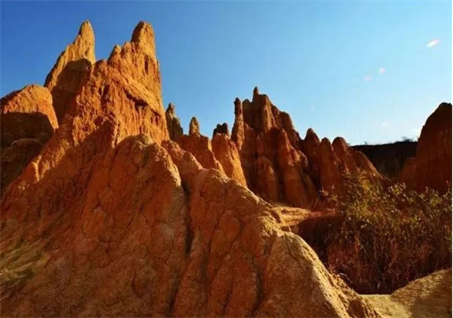 如果說靈寶山是靈秀之美,那么南澗土林就是完全相反的敦厚之美,陽光下反射著金光的土峰、土柱形狀各異,被稱為“流動的油畫”與周圍蔥郁的森林,形成震撼人心的反差感。