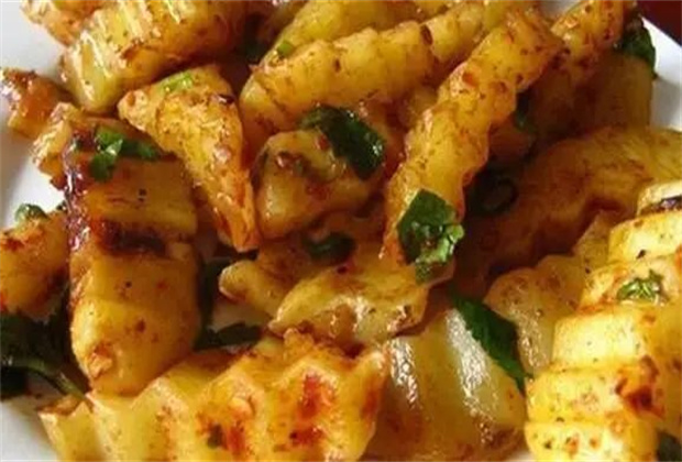 炸洋芋:炸洋芋是洋芋的熱門做法,炸洋芋的精髓在于,一大勺腐乳汁和各種配菜,可能你不會吃折耳根,不會吃芫荽,不會吃芹菜,但是當(dāng)它遇到香香脆脆的炸洋芋,和咸香的腐乳,那叫一個驚艷,誰吃誰知道!