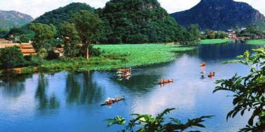 這里峰叢林立,巖溶瀑布景觀壯美,有大小河流 25 條,八寶河清澈透明,緩緩流淌 146。從河野乘船至八甲一段,長 6.5 公里,山水相依、村寨農(nóng)舍,如 “小桂林” 般美麗