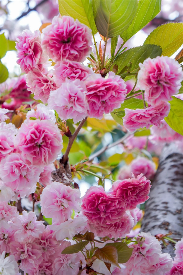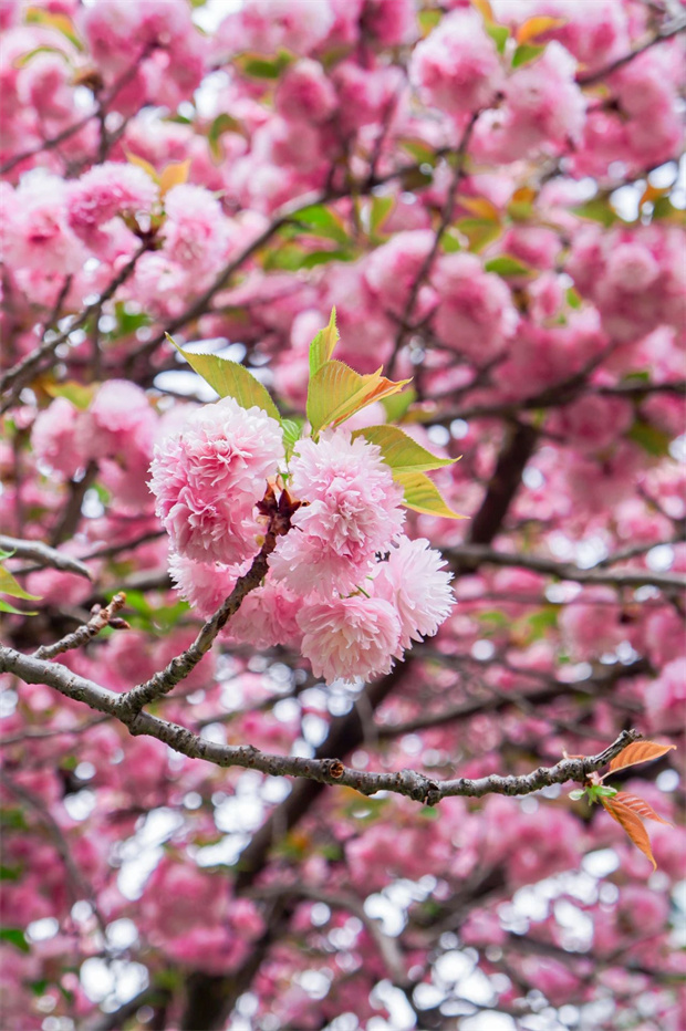 穹頂。陽光透過層層疊疊的花瓣灑下,光影斑駁,如夢(mèng)如幻。每一朵櫻花都像是精心雕琢的藝術(shù)品,綻放在枝頭,熱烈