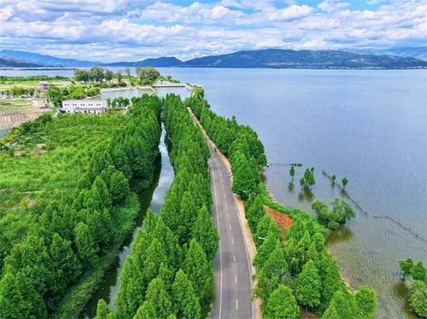 杞麓湖:杞麓湖環(huán)湖綠道是追風者的樂園。騎上單車,沿湖岸迎風穿行,綠樹成蔭,湖風送爽;或悠然乘坐觀光車,36